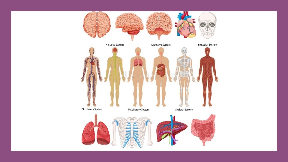 Sistemas del cuerpo ◦ Un sistema corresponde a un conjunto de órganos los cuales se especializan en un proceso determinado. ◦ Está formado por 10 sistemas: ◦ ◦ ◦ ◦ ◦ Sistema circulatorio Sistema endocrino Sistema esquelético/óseo Sistema inmunitario/linfático Sistema reproductor Sistema muscular Sistema nervioso Sistema tegumentario Sistema digestivo Sistema excretor