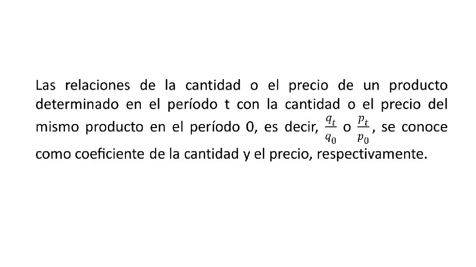 Los índices de precios y de volumen son números que sólo pueden interpretarse en términos de evolución. Por convenio, el período de tiempo utilizado como punto de partida se denominará como período 0 y el período que se compara con él como período t. Los dos períodos de tiempo pueden ser consecutivos o no consecutivos.