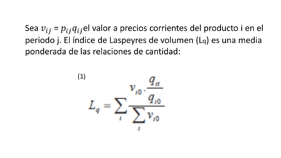 Consideremos ahora una serie cronológica de índices de volumen de Laspeyres, a saber: (6)