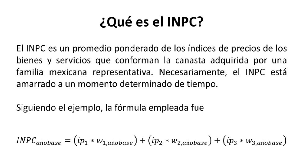 DEFINICIÓN DEL INEGI El Índice Nacional de Precios al Consumidor (INPC) es un indicador económico global cuya finalidad es medir, a través del tiempo, la variación de los precios de una canasta de bienes y servicios representativa del consumo de los hogares mexicanos. El INPC es el instrumento estadístico por medio del cual se mide el fenómeno económico que se conoce como Inflación. Este indicador recoge, principalmente, los efectos de las variaciones de precios en la fase de comercio al menudeo, que incluye los cambios que se observan a lo largo de todo el proceso de comercialización y distribución nacional.