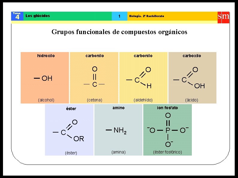 GLÚCIDOS CARACTERÍSTICAS Químicamente, los glúcidos son polialcoholes con grupo funcional carbonilo (aldehído o cetona), lo cual los convierte en polihidroxialdehídos o polihidroxicetonas.