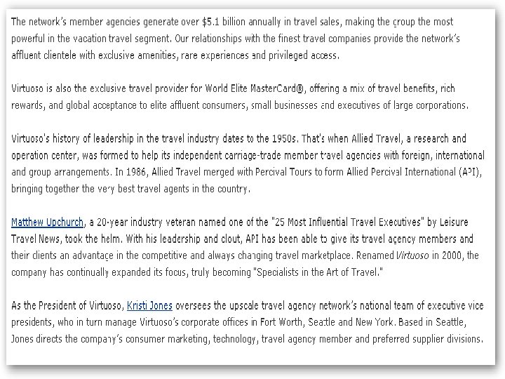 Clasificación de los portales de Turismo según su objetivo: • Posicionar un destino: promueven uno o varios destinos brindando información del lugar con listado de alojamientos, actividades, circuitos turísticos, información sobre como llegar, mapas, fotografías, etc. • Brindar información específica de un nicho del mercado o de una actividad: dentro de la información que brindan encontramos datos relevantes, como son el operador de la expedición, sugerencias de libros, mapas y otros sitios con mayor información de la actividad. Ejemplo: www. away. com