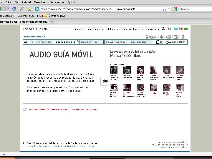 Sitios de operadores. Tipos • Operadores de alojamiento: muestran las • • • comodidades e informan de todos los atractivos cercanos al establecimiento. Operadores de alquiler de autos: muestran sus flotas, diferenciando los automóviles con sus comodidades y condiciones de alquiler, precios, contratos y costos por kilometraje. Operadores aéreos (compañías aéreas): han desarrollado sitios de reservas on line con tecnología de punta entre las que se destacan los servicios móviles. Operadores de Excursiones: muestran las distintas opciones que posee el operador referente a destinos y tipos.