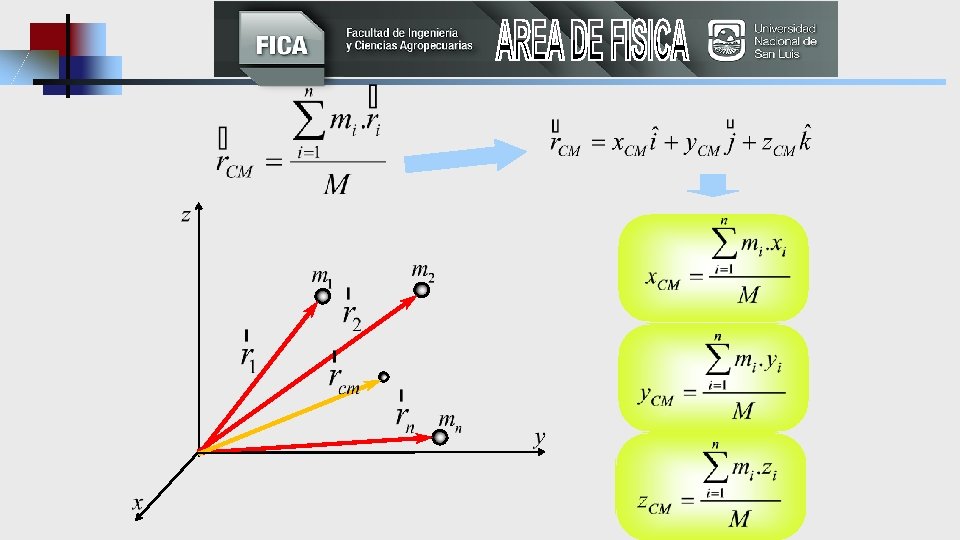 6 -5 Centro de masa: propiedades del centro de masa y x 2 x 1 x m 1 x. CM m 2 Está a la mitad de la distancia entre ellas