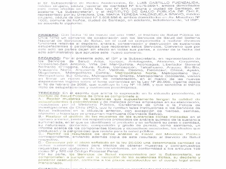 INDICE 1. Antecedentes históricos art. 43 Ley 20. 000 2. Convenio Servicios de Salud con ISP 3. Oficio N° 719 del ISP 28 de Mayo 2009 4. Fallos absolutorios de la Excma. Corte Suprema. 5. Fundamentos Corte Suprema 6. Fundamentos del Ministerio Público 7. Situación pericias cannabis Sativa Servicios de Salud 8. Modificaciones legales solicitadas por el Ministerio Público