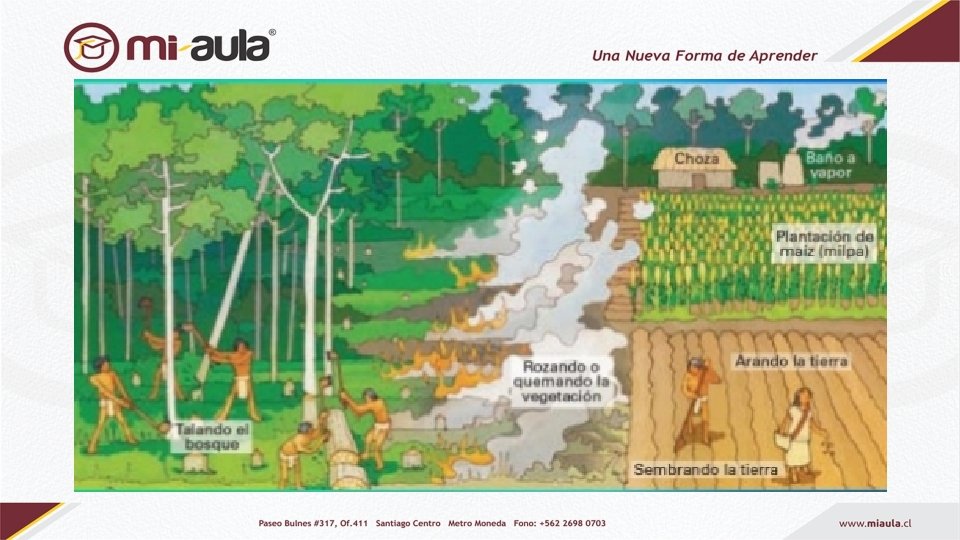 La tecnología maya En la zona selvática y pantanosa, utilizaron el sistema de roza (cortar y quemar), Es un simple proceso de talar la selva, dejar secar los arboles y arbustos para quemarlos después en sus lugares y sembrar en este terreno. Después de algunos años se acaba la fertilidad y se cambia el lugar del campo de maíz. A los campos de cultivo se les llamaba milpas se desarrollaban multicultivos, como frijol, maíz, calabazas y ajíes.