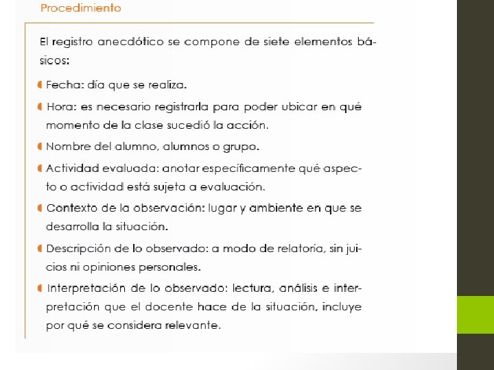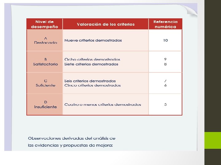 II. 3. Evaluación del desempeño en el aula 1. Tener un propósito claro 2. Identificar los aspectos observables 3. Crear un ambiente propicio 4. Emitir un juicio o calificación