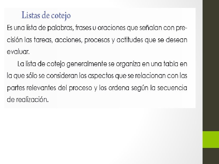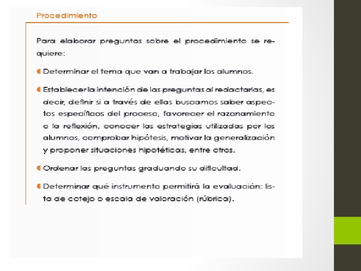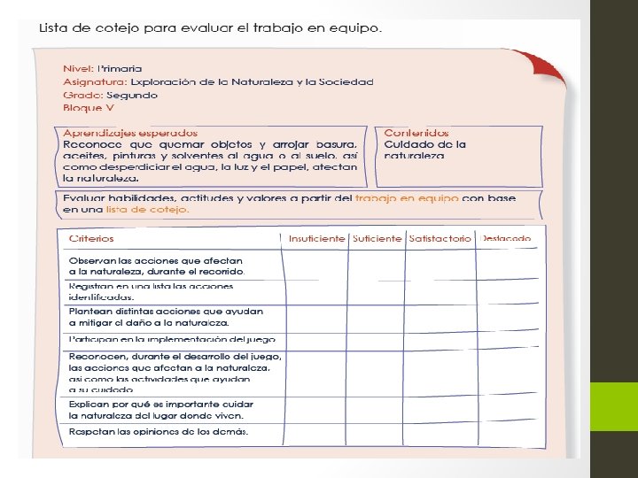 En la evaluación como proceso dinámico: 1. Se emiten juicios de valor sobre el aprendizaje, considerando los factores que lo favorecen en mayor o menor medida. 2. Se funda en observables, ya sea mediante el cuestionamiento directo a los estudiantes o bien a través de la observación de su trabajo en la interacción cotidiana con ellos. 3. Orienta la toma de decisiones, da pauta a acciones en términos de valoración de conocimientos, logro de aprendizajes esperados, calificación del desempeño, reorientaciones del aprendizaje, mejora del proceso educativo, y adecuación de actividades de aprendizaje, entre otros.