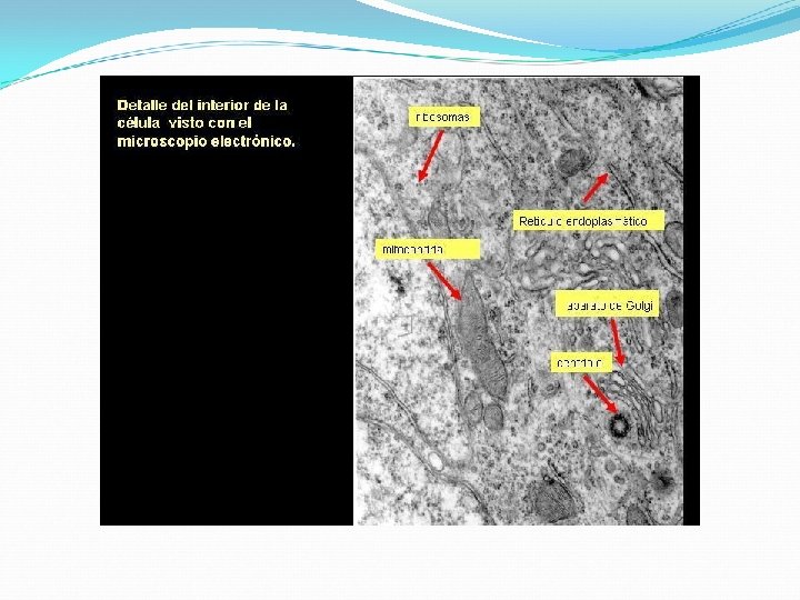 ORGANELOS MEMBRANOSOS MEMBRANA SIMPLE MEMBRANA DOBLE RER REL Aparato de Golgi Lisosomas Peroxisomas Glioxisomas Vacuolas Núcleo Mitocondrias Cloroplastos NO MEMBRANOSOS Ribosomas Inclusiones Citoesqueleto Cilios y Flagelos Centríolos