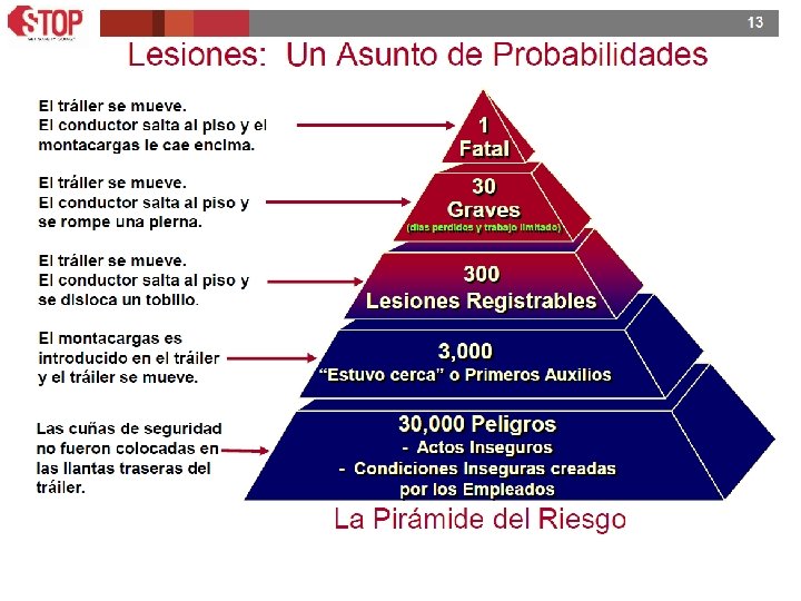 Preguntas de Discusión • ¿ Cree usted que todas la lesiones se pueden prevenir? • ¿Quién es el responsable de la seguridad en su área? • ¿ Saben de una lesión que no haya sido causada por una conducta imprudente? • ¿Qué significa la frase “ El nivel mas alto de desempeño que usted puede esperar lo determinan los estándares mínimos que usted establezca?