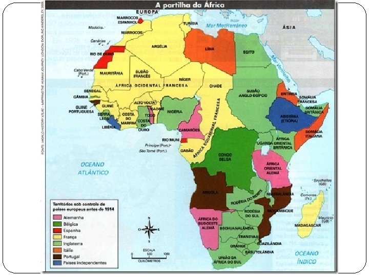 Após a partilha. . Ocorreram movimentos de resistência; As potências europeias incentivaram rivalidades entre os grupos africanos. As sociedades tradicionais locais absorveram grande parte da cultura dos colonizadores