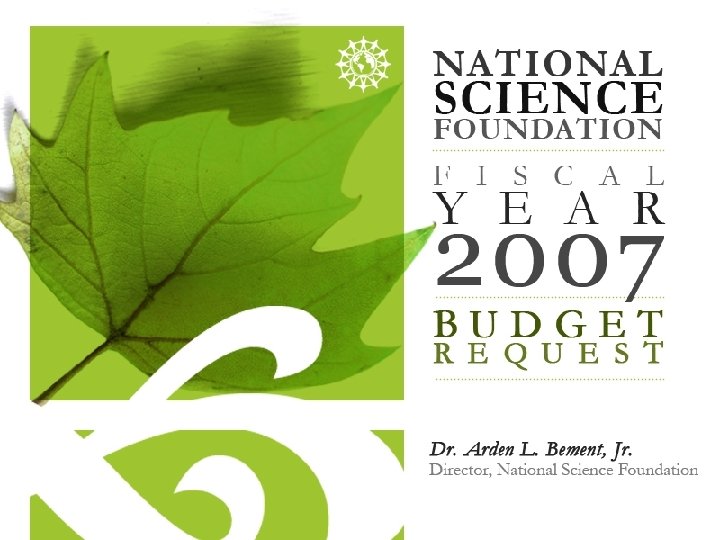 Appropriations Account FY 2007 Request Change over FY 2006 Research & Related Activities $4, 666 $334 7. 7% Education & Human Resources $ 816 $ 20 2. 5% Major Research Equipment & Facilities Construction $ 240 $ 50 26. 0% Salaries & Expenses $ 282 $ 35 14. 2% National Science Board $ 4 Inspector General $ 12 $. 5 4. 4% TOTAL, NSF $6, 020 $439 7. 9% ($. 04) (1. 0%)