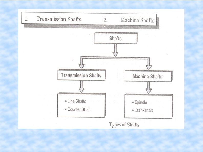 Unit 04 1. Machine Elemets Shafts, axles, keys bearings, flywheel govverner 2. Power transmitting elements Belt drives, chain drives, Gear drives, couplings, clutch, brakes. 3. Mechanisms