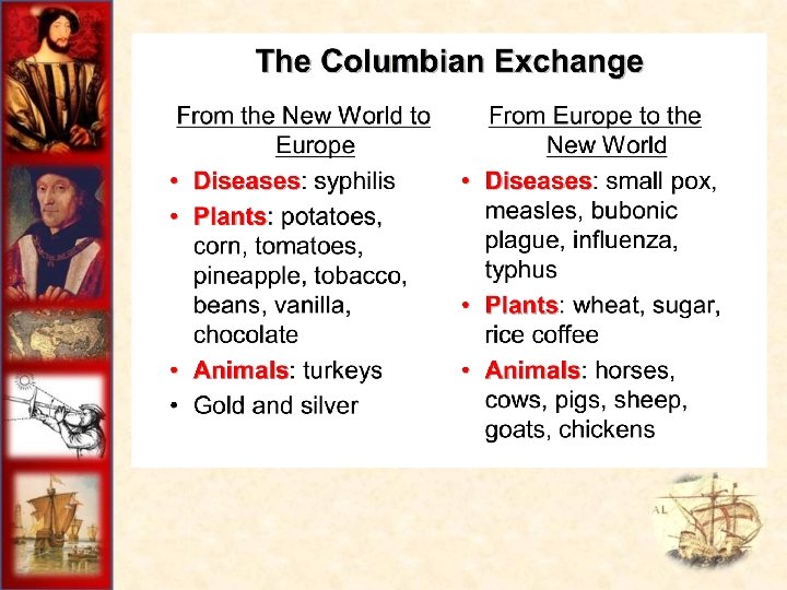 IV. The Columbian Exchange A. Both Europe and the New World were transformed by the Age of Exploration 1. For Europeans: revolution in diet, increased wealth, and rise of global empires 2. Native Americans experienced catastrophic changes
