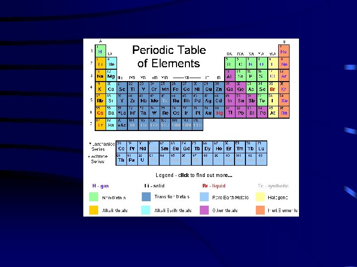 • If you want to learn more about the elements online, check out these periodic tables: interactive 1 interactive 2 (click on)