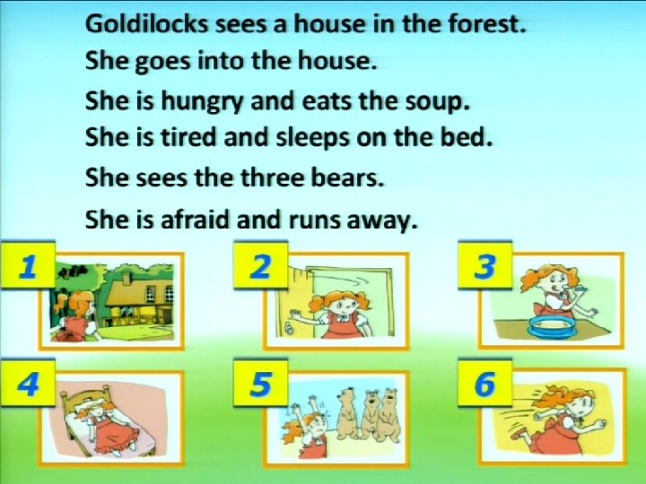 Let’s retell: Goldilocks is happy. There is. . . Goldilocks is hungry and thirsty. There is. . . Goldilocks is tired. There are. . . Goldilocks is afraid. There are. . .