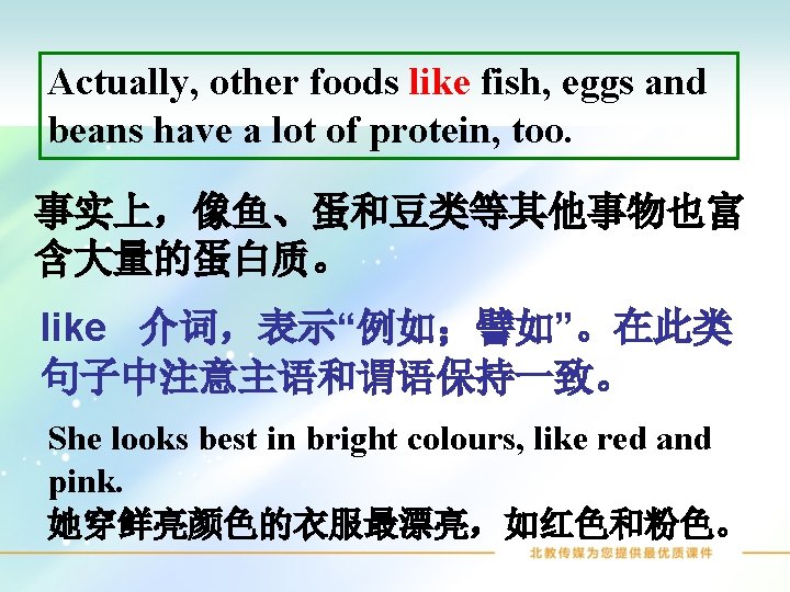 Language points Fruits and vegetables are also rich in vitamins, minerals and fibre. 水果和蔬菜富含维生素、矿物质和纤维。 be rich in 在……方面很富有;充裕 The country is known to be rich in natural resources. � 个国家以丰富的自然� 源而著称。