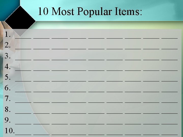Class Activity Pick up your textbook & Handout (Remember your number) In groups of 4: ASSIGN DUTIES: • Task-Master List the names and what • Time-Keeper Each member’s duties are. • Recorder • Reporter Create & discuss a list of the 10 most popular products or services today Answer these questions: • Why are they popular? • How do people find out about them? Business & Marketing