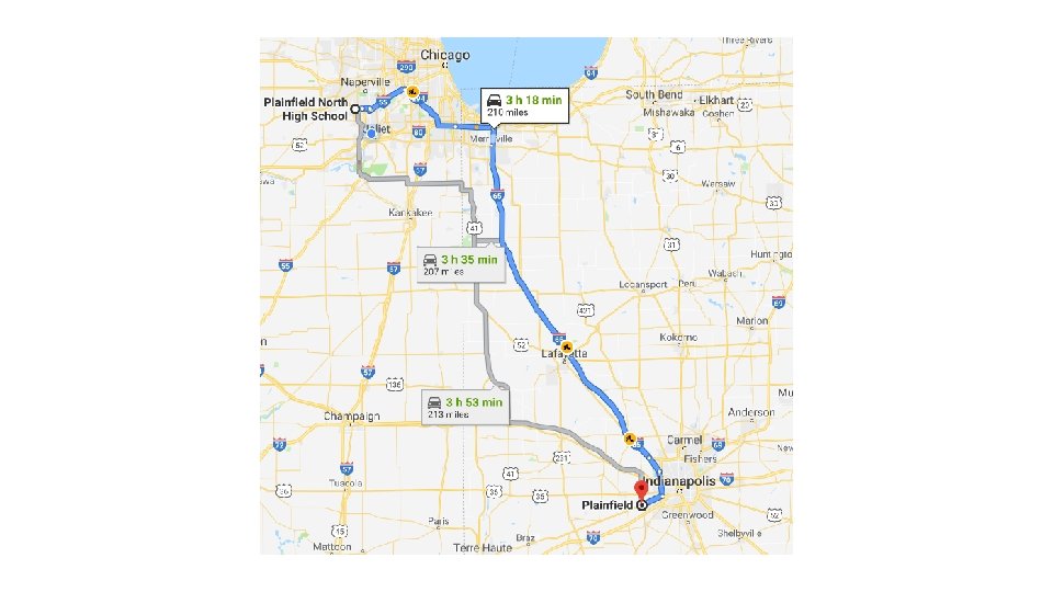 Destination Bloomington, IL Travel Time (by Distance (miles) plane) 116 54 min Los Angeles, CA 1, 745 4 h 25 min London 3, 951 7 h 45 min Delhi 7, 484 Hong Kong 7, 794 Brisbane, Australia 8, 901