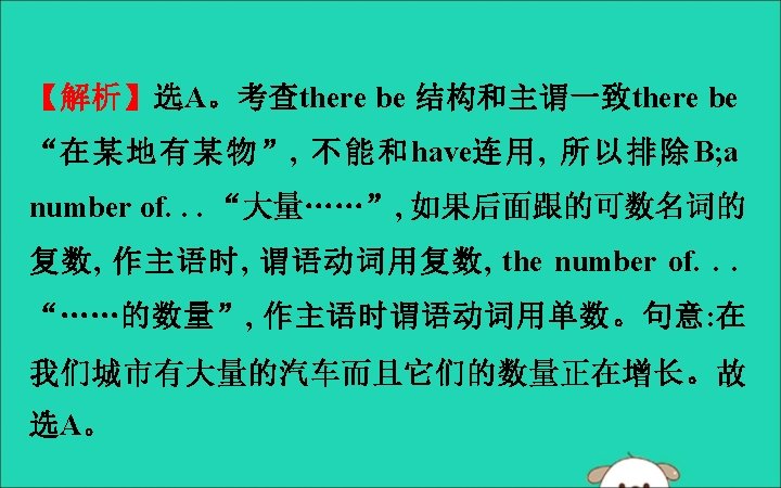 ②(2016·巴 中 中 考 )In our city there _____a number of cars and the number of _____growing large. A. are; is B. have; is C. is; are them