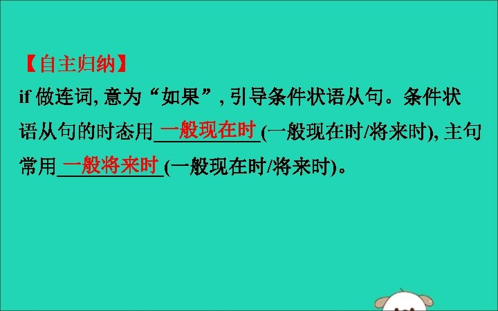 *If it doesn’t rain tomorrow, we’ll go to climb the mountain. 如果明天不下雨, 我们就去爬山。 *If he is free today, he will go with us. 如果今天他有空的话, 他会和我们一起去的。