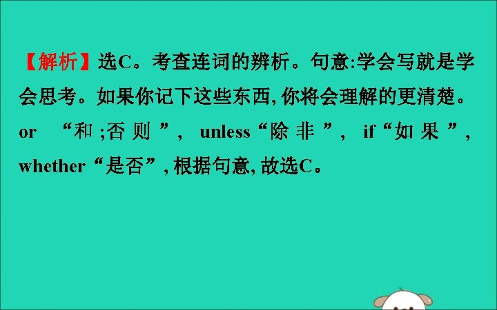 【即学活用】 ①Learning to write is learning to think. You will know things more clearly _____you write them down. 世纪金榜导学号 38504080 A. or B. unless C. if D. whether