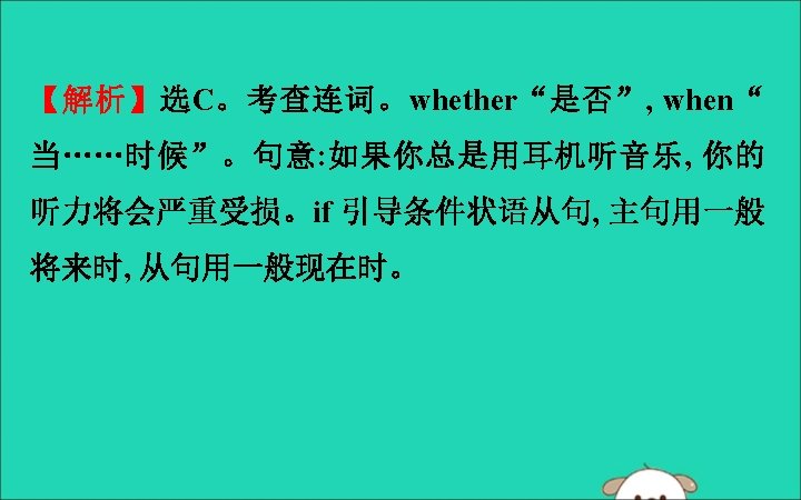②(2016·哈尔滨中考)Your hearing will be badly hurt _____you always listen to music by earphone(耳 机). A. whether B. when C. if