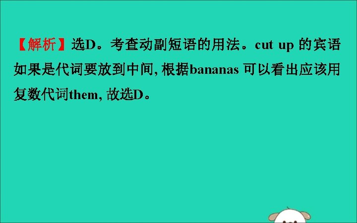 【即学活用】 ①You need to peel the bananas and _____. A. cut up it B. cut up them C. cut it up D. cut them up