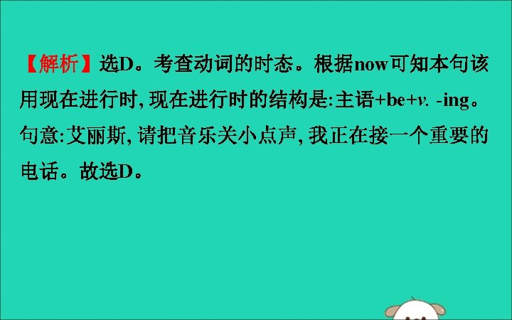 ③(2016·孝感中考)Alice, please turn down the music, I_____ an important phone now. A. answer B. answered C. have answered D. am answering