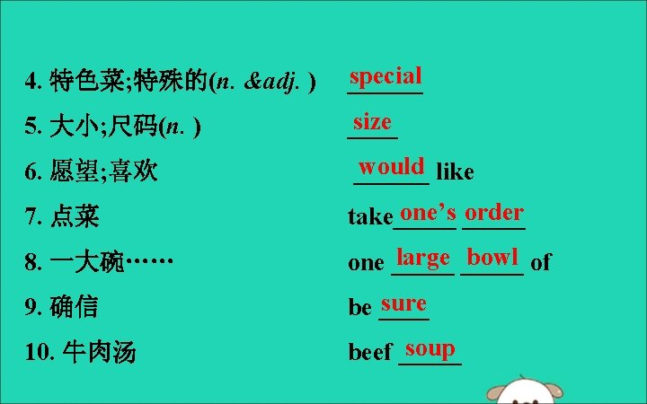idea 4. It’s a good ____(想法) to finish the work in this way. blow 5. The birthday person must make a wish and _____ out ___(吹灭)candles.