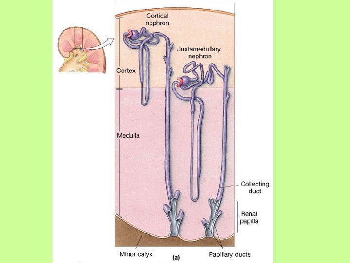 Secretion • Some substances are secreted by the Peritubular Capillaries back into the renal tube • Includes… – Creatinine – H+, K+ ions – Drugs • Any materials left move out the collecting duct, through the renal pelvis, and down the ureter to the bladder