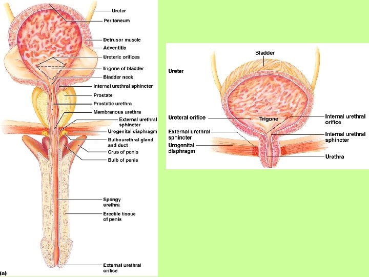 Bladder • Trigone – three openings of the bladder – Two from the ureters – One to the urethra