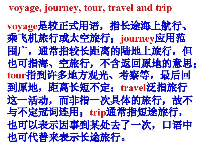 9. Captain Nemo takes Dr Aronax and his friends on a voyage across the ocean. voyage n. 航行,旅行,航海 go on/make/take a voyage around the world 环球旅行 We made a voyage to China. 他在回航途中。 He is now on the voyage home.