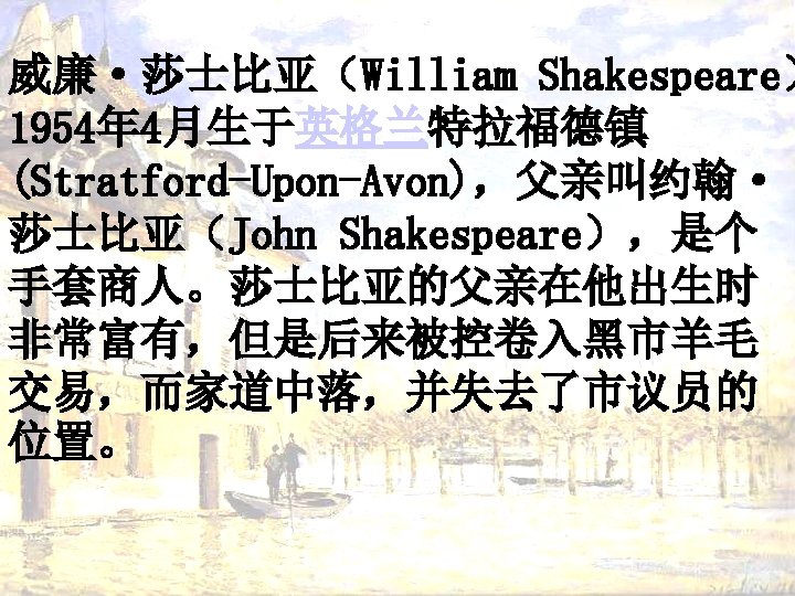 Antonio is a rich businessman of the city of Venice. Everyone likes him because he is always ready to help others. At the time of this story his ships are all at sea to trade with foreign countries. Bassanio , Antonio’s best friends, is in love with Portia is a rich and beautiful lady. She loves Bassanio but they cannot get married because he is too poor. Then Bassanio asks Antonio to lend him three thousand ducats.