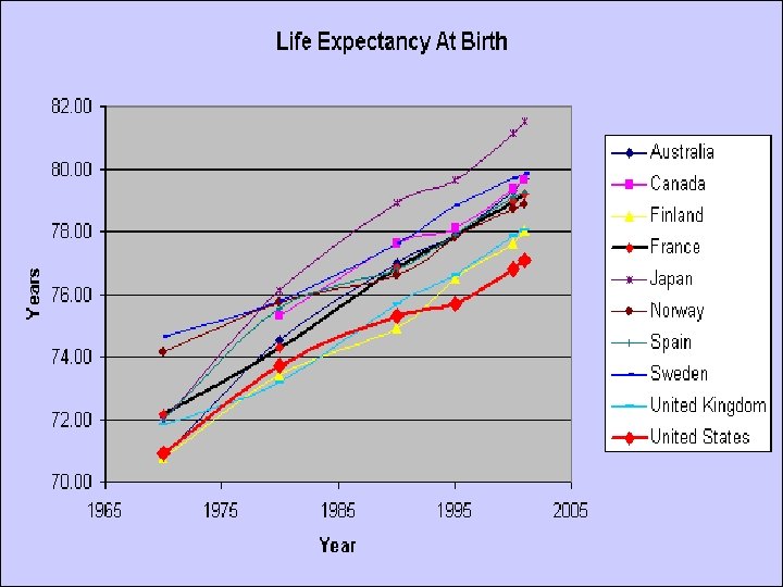 What do you predict your life expectancy to be? • http: //gosset. wharton. upenn. edu/mortality/perl/Cal c. Form. html • Almost 2. 5 million Americans died last year – – 650, 000 heart disease 550, 000 cancer 150, 000 stroke 73, 000 diabetes • Comparisons: – High: Japan (83, females 86) Singapore (81. 98, females 84) – U. S. : 79, females 81. Low: Botswana (47) Lesotho (48) – World avg. (70)