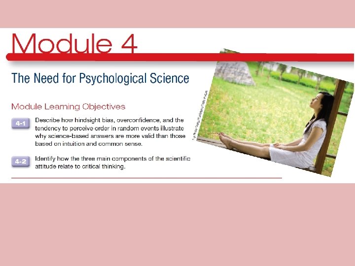 Unit 2: Research Methods Module 4: The Need for Psychological Science Module 5: The Scientific Method and Description Module 6: Correlation and Experimentation Module 7: Statistical Reasoning in Everyday Life Module 8: FAQ’s about Psychology