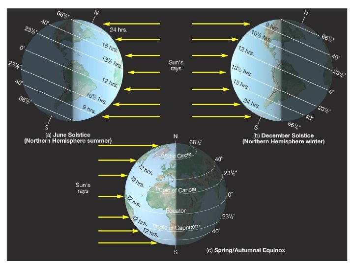 Equinox & Solstice SOLSTICE 1. From Latin for sun stand still 2. Sun is directly over head @ 12 noon on 23. 5 o North or South. 3. Occurs Dec 21 (Winter) which is the shortest day of the year (North) 4. & June 21 (Summer) which is the longest day of the year (North)