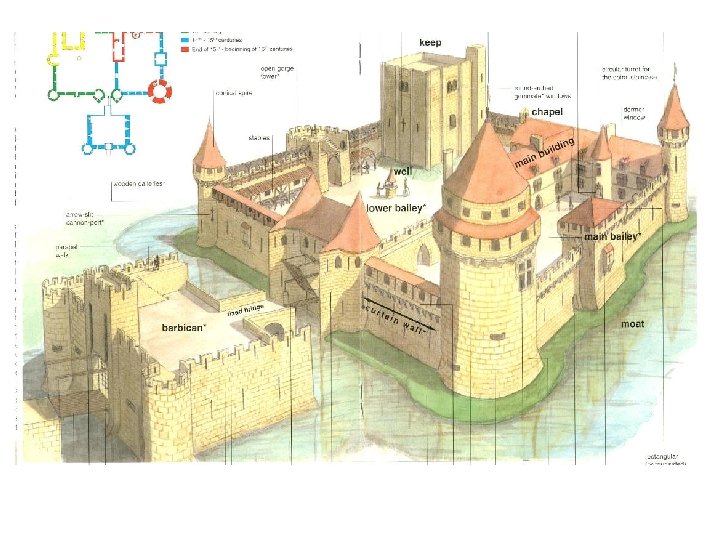 Parts of the castle. o o o § § ü Walled area: Thick walls and towers. Moat. Drawbridge. ü Inside: The keep: the highest, strongest and most secure place. Great hall.