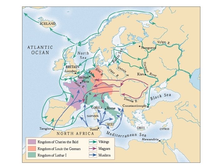 1) ORIGINS OF FEUDALISM. § Feudalism = main political, social and economic system in Western Europe from 9 th to 13 th cent. § After the death of Charlemagne → instability and wars between his successors. § Invasions of Vikings (Normans), Muslims and Magyars → 2 nd invasions. § Kings incapable of defending territories and gave power to local noblemen. § Europe → divided into many different kingdoms with several common characteristics: o Feudalism, Christianity, Romanesque art, cultural poverty.