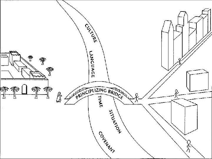 • Definitions and the Interpretive Journey 1 – Grasping the Text in Their Town What did the text mean to the biblical audience? 2 – Measuring the Width of the River What are the differences between the biblical audience and us? 3 – Crossing the Principlizing Bridge What is theological principle in this text? 4 – Grasping the Text in Our Town How should individual Christians today apply theological principle(s) in their lives?