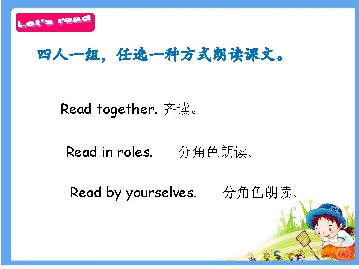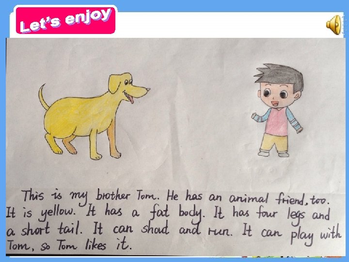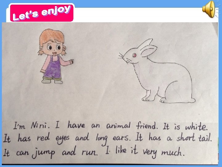 1. Listen, read and try to retell story time. 2. Introduce your animal friend to your parents or friends.