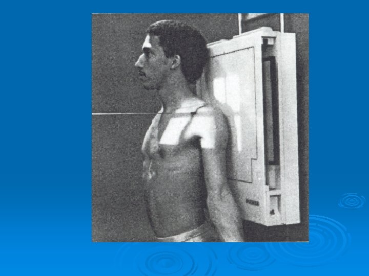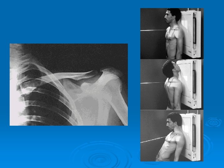 Patient position Erect Part position • • • Adjust mid point of cassette to level of A. C joints. Center MSP to midline of cassette. Patient should hold sandbags of equal. weight in each hand. Second radiograph must obtained without weight. Expose on suspend expiration.