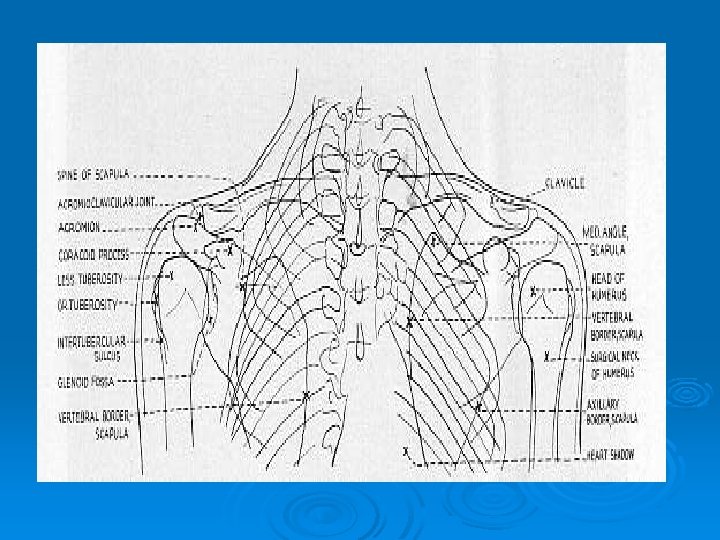 Structures shown • Lateral border of scapula free of superimposition • Medial portion of scapula through the thoracic structures •