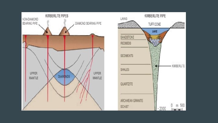 Kimberlite and Diamonds they are formed deep within the mantle, at are erupted rapidly and violently, It is this depth of melting and generation which makes kimberlites prone to hosting diamond xenocrysts.