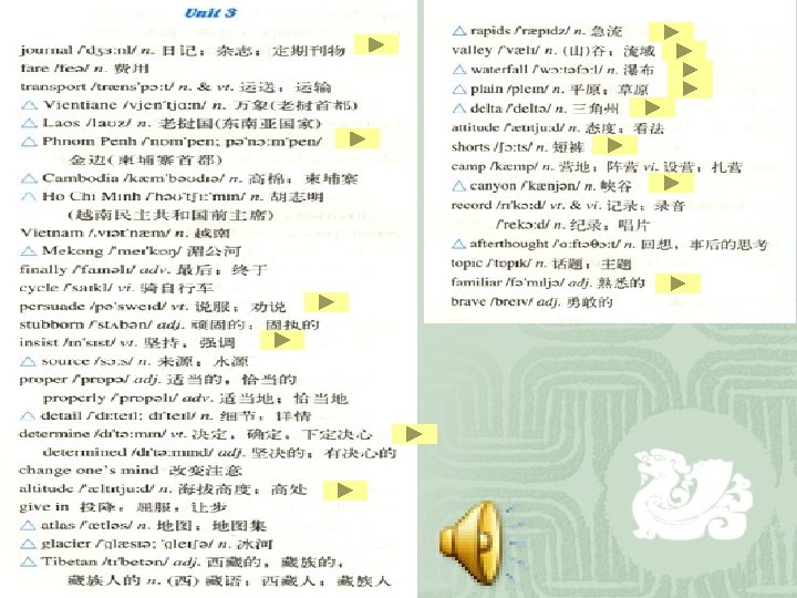 P 19 Ex 2. 1. She has decided to do something and will not change her ideas. 2. Details are not important to my sister. This means that she concentrates on the broad outline of the trip but not the particulars. 3. A meander is a geographical term to describe the snakelike bends that a river makes as it slows down to flow through valleys to the plains. The sentence means that the Mekong River flows slowly and gently through the valleys and reaches the farming plains.