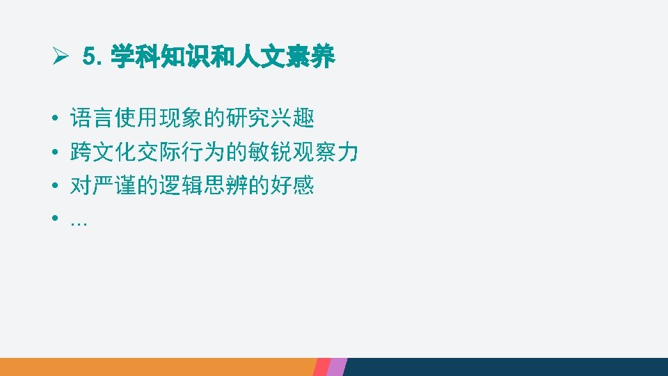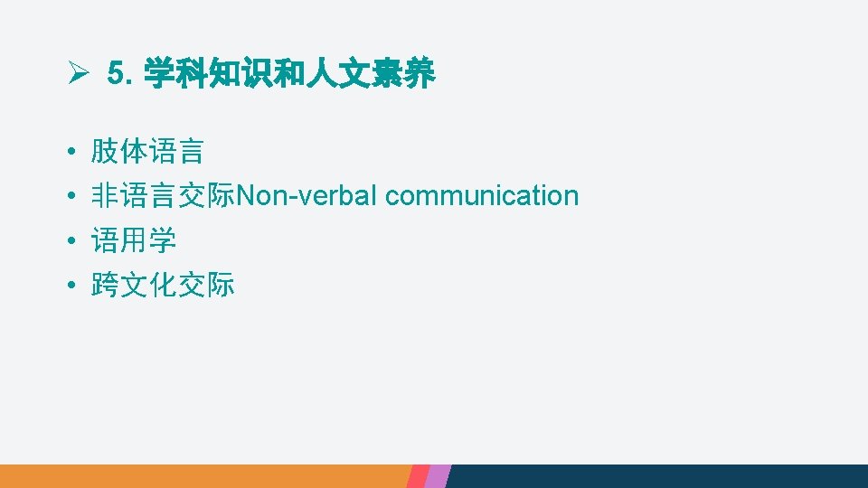 Ø 4. 跨文化能力: 通用技能 • Intercultural awareness/attitude • (p 61 2(2); p 74 Intercultural reflection, question 3) • Intercultural knowledge