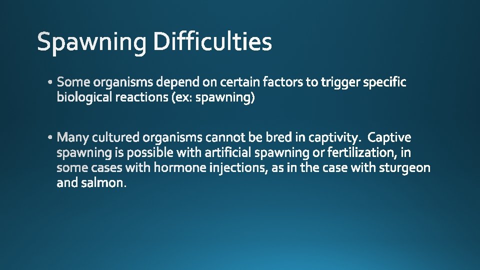 Phases of Aquaculture Harvest & Market Broodstock Managemen t Hatchery Productio n Grow-out Nursery Production