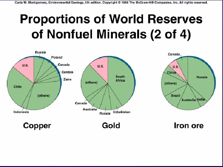 Non fuel mineral-rich countries US: 50% of molybdenum Australia & New Guinea: 50% of aluminum ore Congo: 50% of cobalt Cuba: 40% of nickel Chile 30% of copper South Africa 50% gold 75% chromium 90 % platinum 50 % manganese + diamonds
