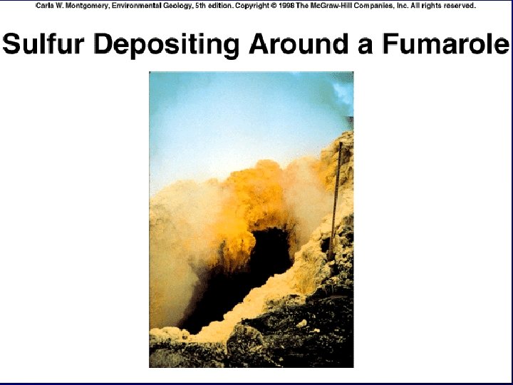 Mineral Processing • Mineral extraction is environmental hazardous – – Ore rock is ground or crushed for extraction The fine waste material is placed in tailings The tailings are exposed to wind and weather Harmful elements such as mercury, arsenic, cadmium, or uranium can leached out – The surface and subsurface water systems are too often contaminated – Chemicals used in ore extraction must be controlled and not just dumped – Smelting ores to extract metals, often produce metal laden exhaust gas or ash, sulfur oxide and acid rain pollution