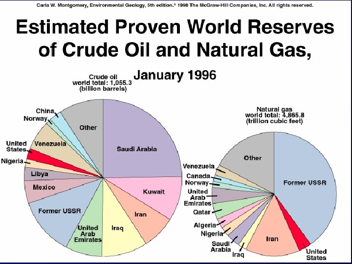 Oil and Natural Gas • Petroleum: complex suite of chemical compounds including oil and natural gas associated with it • Oil: a variety of heavy liquid hydrocarbon compounds • Natural Gas: gaseous hydrocarbon compound most commonly methane (CH 4)